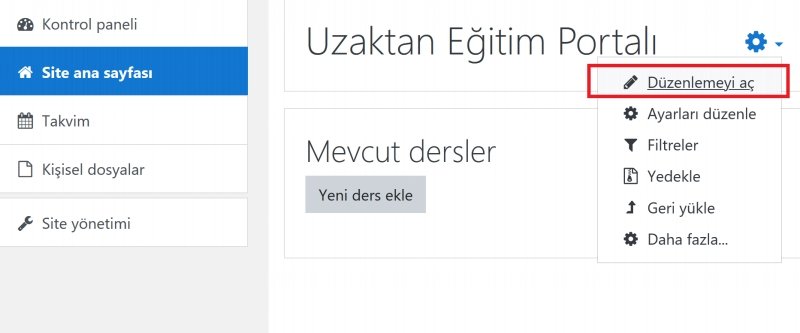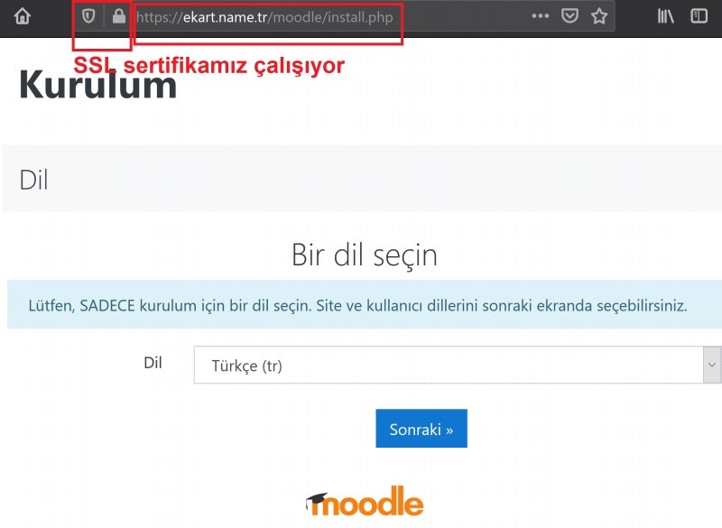 Alan adımız/moodle adresini herhangi bir internet tarayıcının adres çubuğuna https olarak yazıp onaylayarak kuruluma başlayalım.