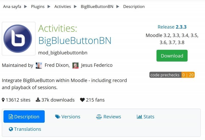 Kurulumu kendinize göre tamamladıktan sonra siteniz hazir. Zoom, jitsi gibi sistemlere alternatif olan Bigbluebutton eklentisini sitenize kurmak istiyorsanız Kontrol paneli -> Site Yönetimi -> Eklentiler -> Eklenti yükle menüsünden yükleyebilirsiniz.